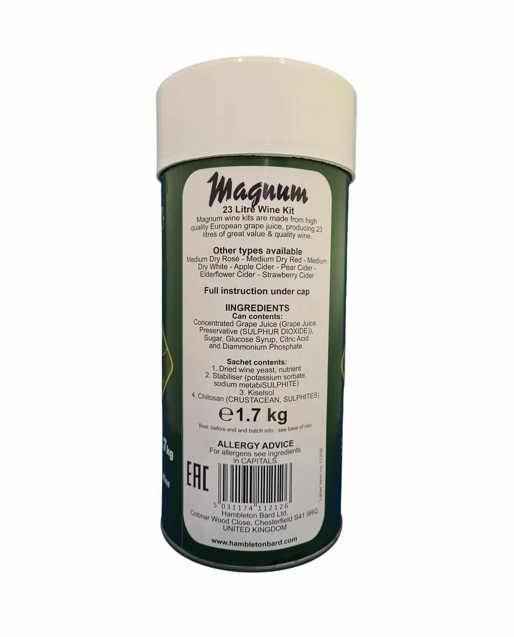 Magnum have created this kit using Pinot Grigio grape concentrate. It is a delicate white with grassy notes and a straw colour and hints of plum and a faint note of citrus. A very popular Italian table wine with well balanced acidity.